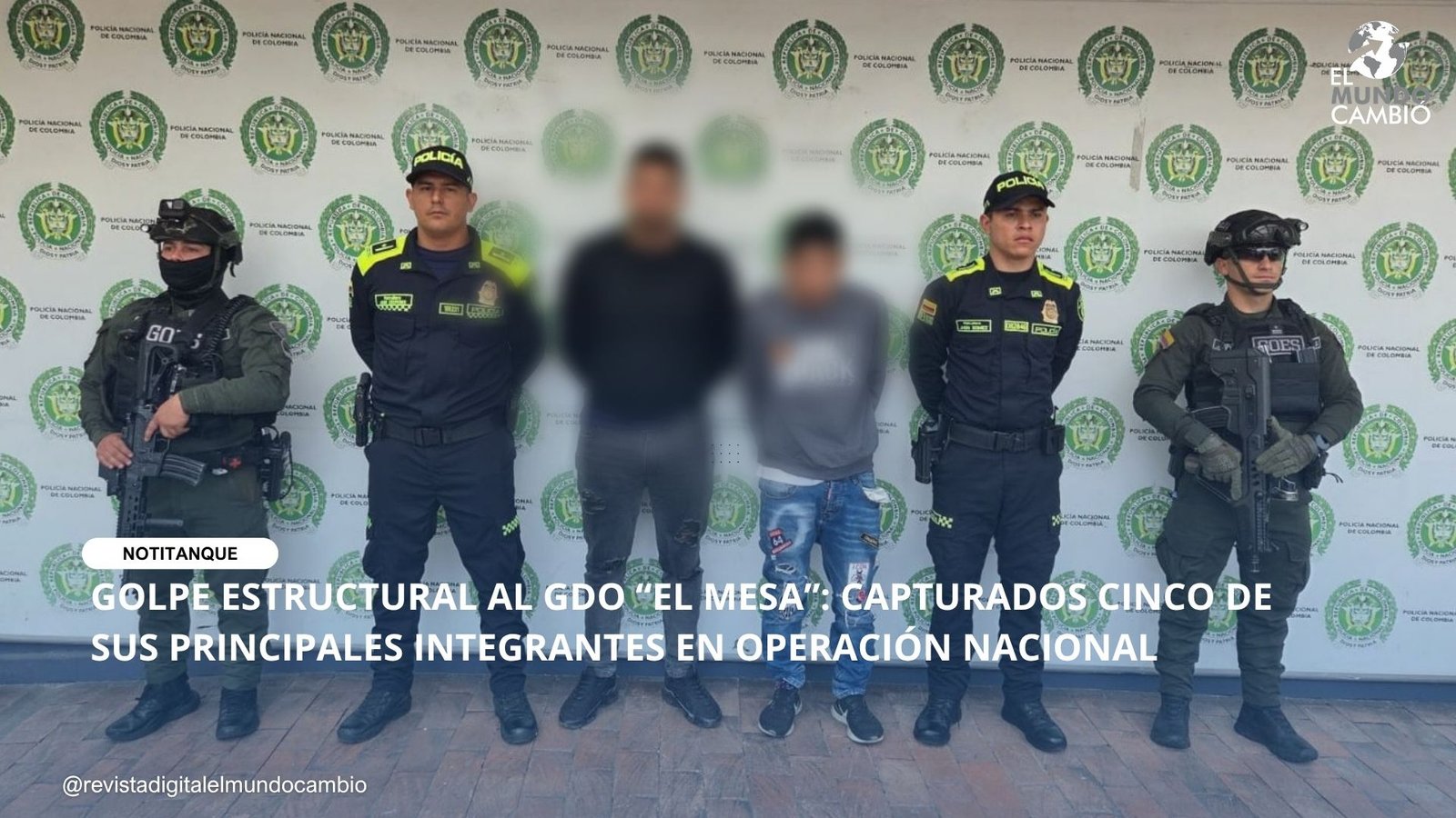 Colombia. En una acción articulada entre la Policía Nacional y la Fiscalía General de la Nación, se logró la captura de cinco presuntos integrantes del grupo delincuencial organizado “El Mesa”,