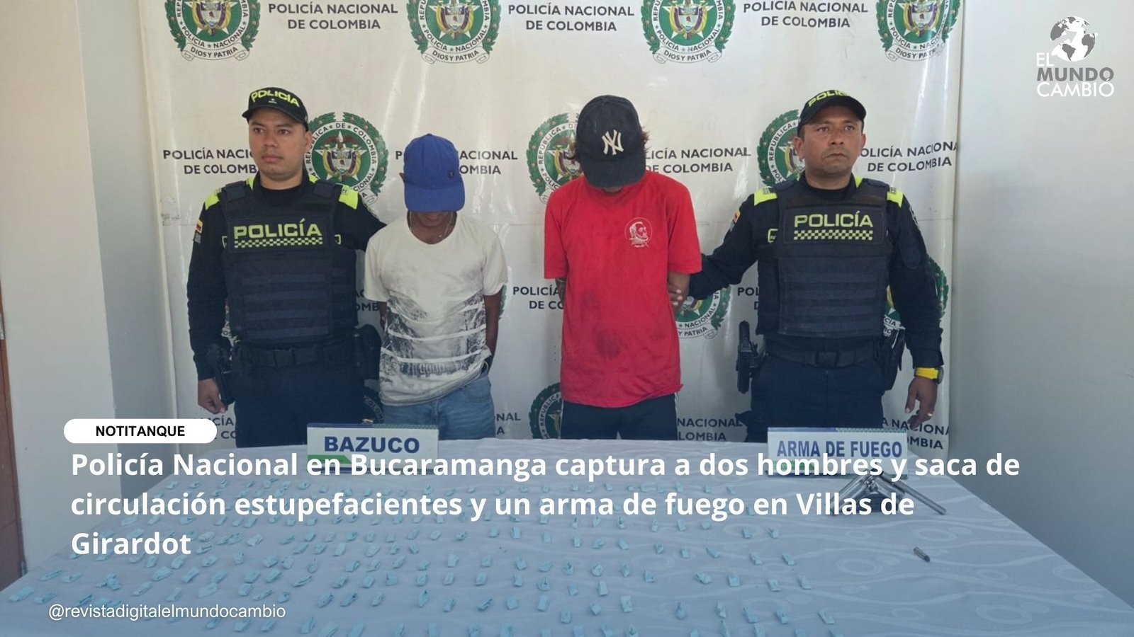 Policía Nacional en Bucaramanga captura a dos hombres y saca de circulación estupefacientes y un arma de fuego en Villas de Girardot