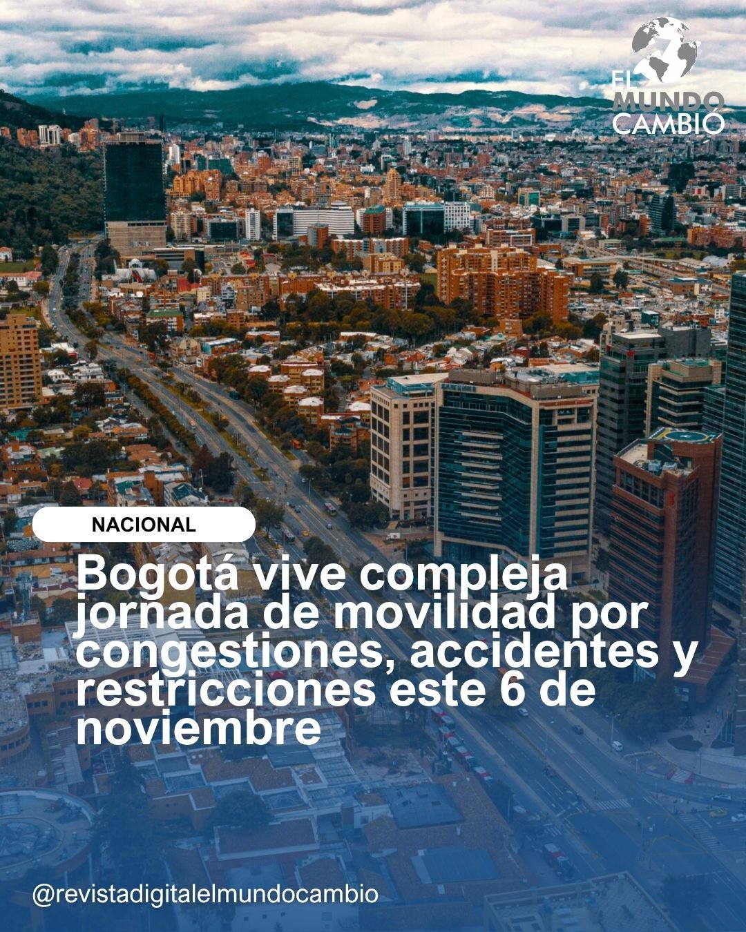 Bogotá enfrenta este jueves 6 de noviembre de 2025 una de sus jornadas de movilidad más complejas de la semana, marcada por congestiones en varios corredores viales principales, un accidente