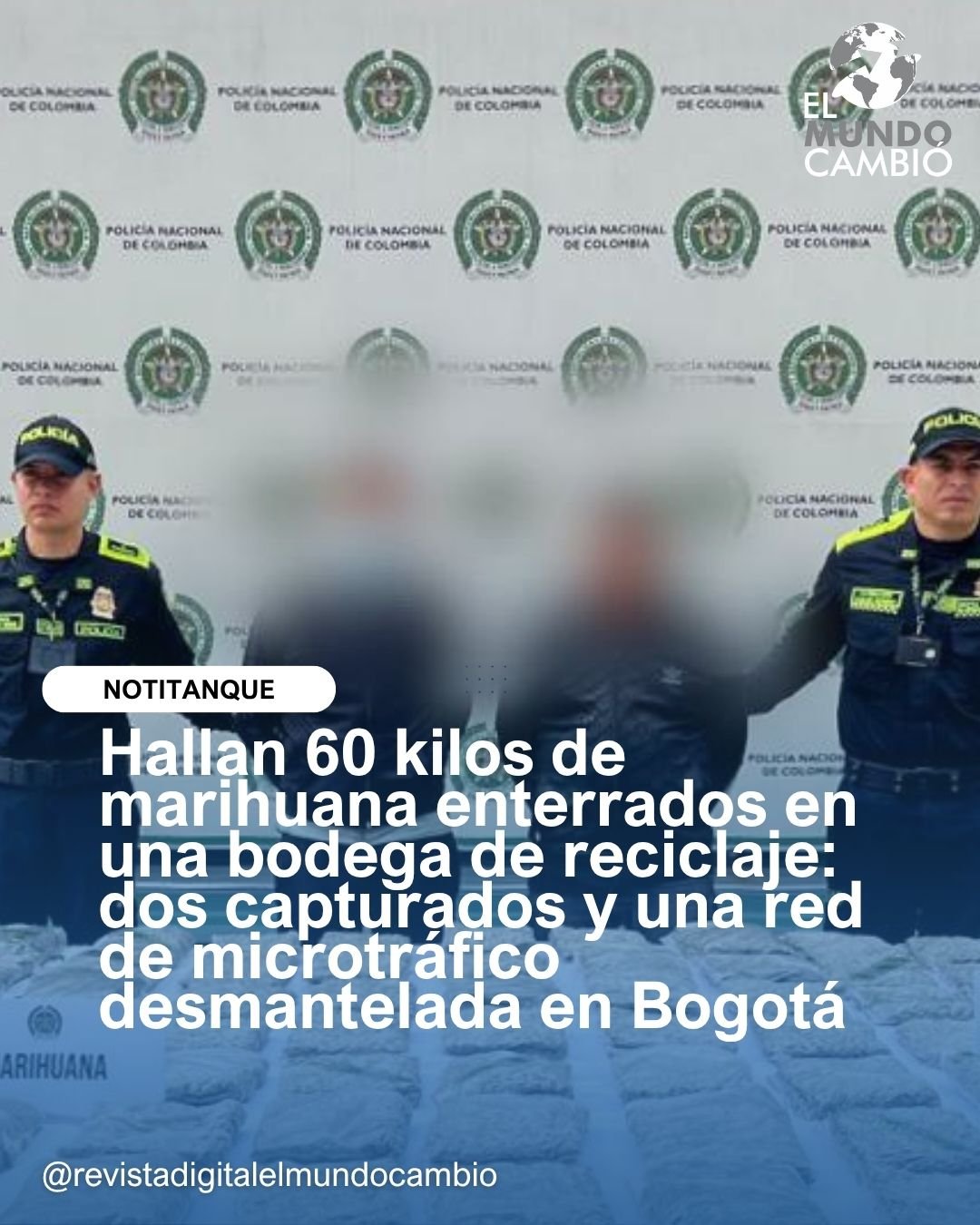 Una operación de alto impacto permitió a la Policía Metropolitana de Bogotá descubrir cerca de 60 kilogramos de marihuana ocultos bajo tierra dentro de una bodega de reciclaje, desarticulando así