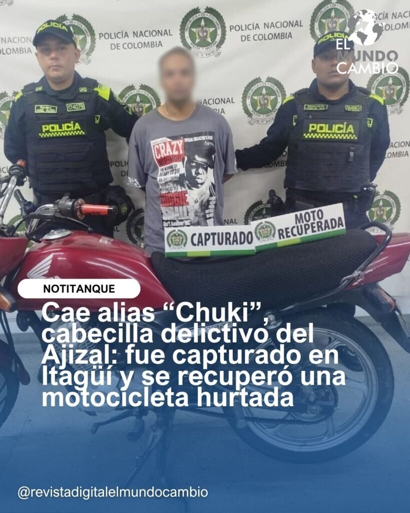 Gracias a una articulación efectiva entre tecnología, inteligencia policial y reacción operativa, la Policía Nacional capturó en Itagüí a alias “Chuki”, señalado integrante del grupo delincuencial común organizado El Ajizal. Durante el procedimiento también fue recuperada una motocicleta que había sido hurtada horas antes mediante la modalidad de halado.