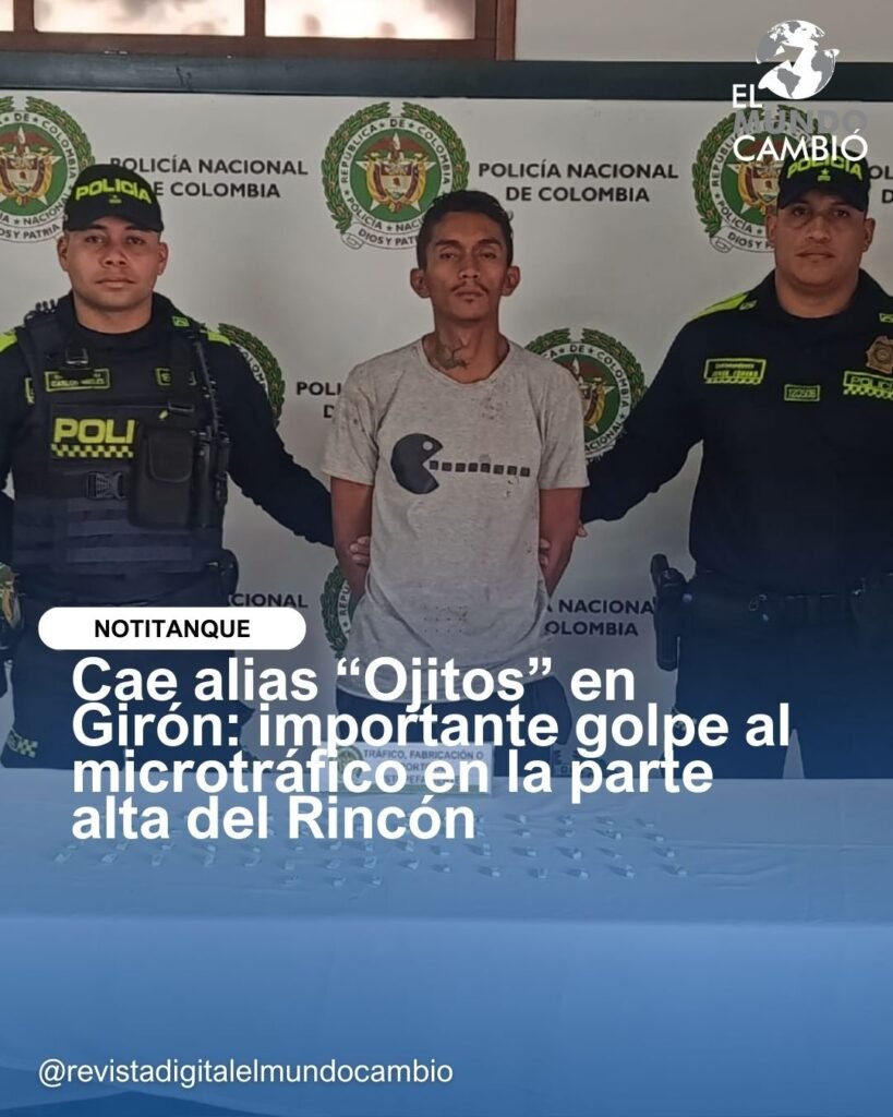 En el marco de la estrategia institucional “Yo Creo en una Metropolitana Bonita y Segura”, la Policía Metropolitana de Bucaramanga asestó un nuevo golpe a las economías ilícitas que afectan la convivencia en el municipio de Girón. Gracias a acciones focalizadas contra el expendio de estupefacientes, unidades de la Zona de Atención Policial (ZAP) lograron la captura de un hombre de 30 años, conocido en el sector como alias “Ojitos”, presunto comercializador de sustancias psicoactivas.