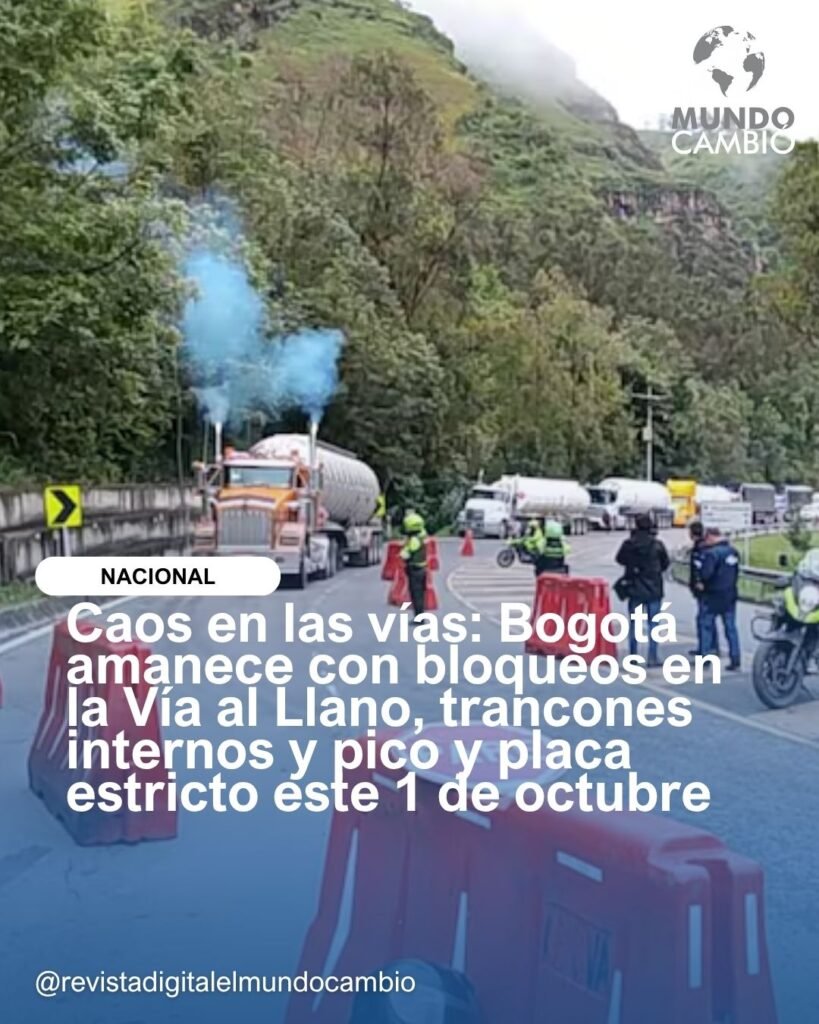 Bogotá recibió la primera jornada de octubre con un panorama vial marcado por bloqueos, restricciones y una congestión que afecta tanto a la movilidad interna como a los corredores de ingreso y salida de la ciudad. La combinación entre el cierre en el tramo de Chipaque, la medida de pico y placa y la alta afluencia de usuarios en horas de la mañana, convirtieron el inicio del día en un verdadero desafío para conductores y pasajeros.