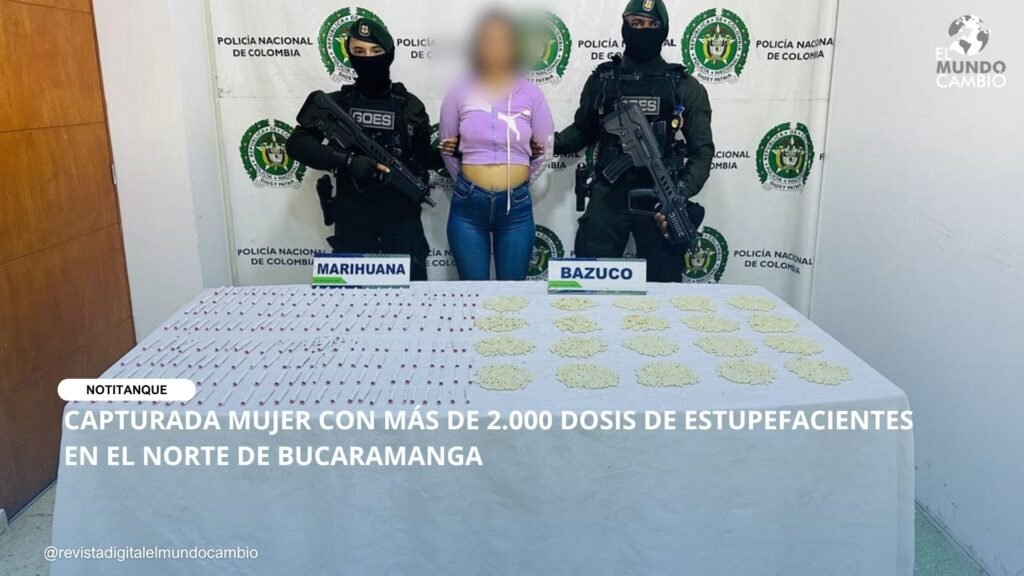 Bucaramanga, Santander. En desarrollo de la estrategia institucional “Yo creo en una Metropolitana bonita y segura”, la Policía Nacional en Bucaramanga, a través del Grupo de Operaciones Especiales (GOES), logró la captura en flagrancia de una mujer de 30 años de edad por el presunto delito de tráfico, fabricación o porte de estupefacientes.