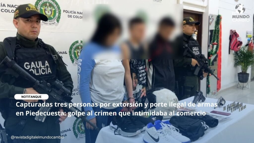 En el marco de la estrategia “Yo creo en una Metropolitana Bonita y Segura” y del plan “Una Navidad con Propósito”, la Policía Metropolitana de Bucaramanga, a través del GAULA Policía, logró la captura en flagrancia de tres personas por los delitos de fabricación, tráfico, porte o tenencia de armas de fuego y extorsión, en el municipio de Piedecuesta.