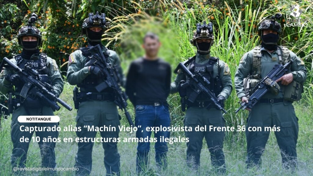 En el marco de la ofensiva institucional contra organizaciones armadas ilegales, la Policía Nacional de Colombia, mediante un trabajo articulado entre el DIJIN, unidades de inteligencia policial y la Fiscalía General de la Nación, logró la captura de Davinson de Jesús Areiza Jaramillo, conocido como alias “Machín Viejo”, señalado explosivista del GAO-r Frente 36.