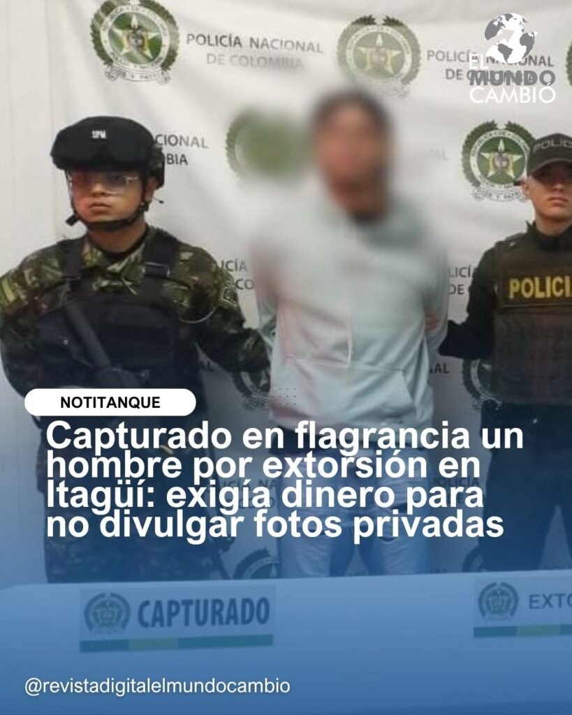 La Policía Nacional de los colombianos, en una rápida acción adelantada por la Unidad Nacional de Intervención Policial y de Antiterrorismo (UNIPOL), logró en las últimas horas la captura en flagrancia de un hombre de 25 años en el municipio de Itagüí, Antioquia, por el delito de extorsión.