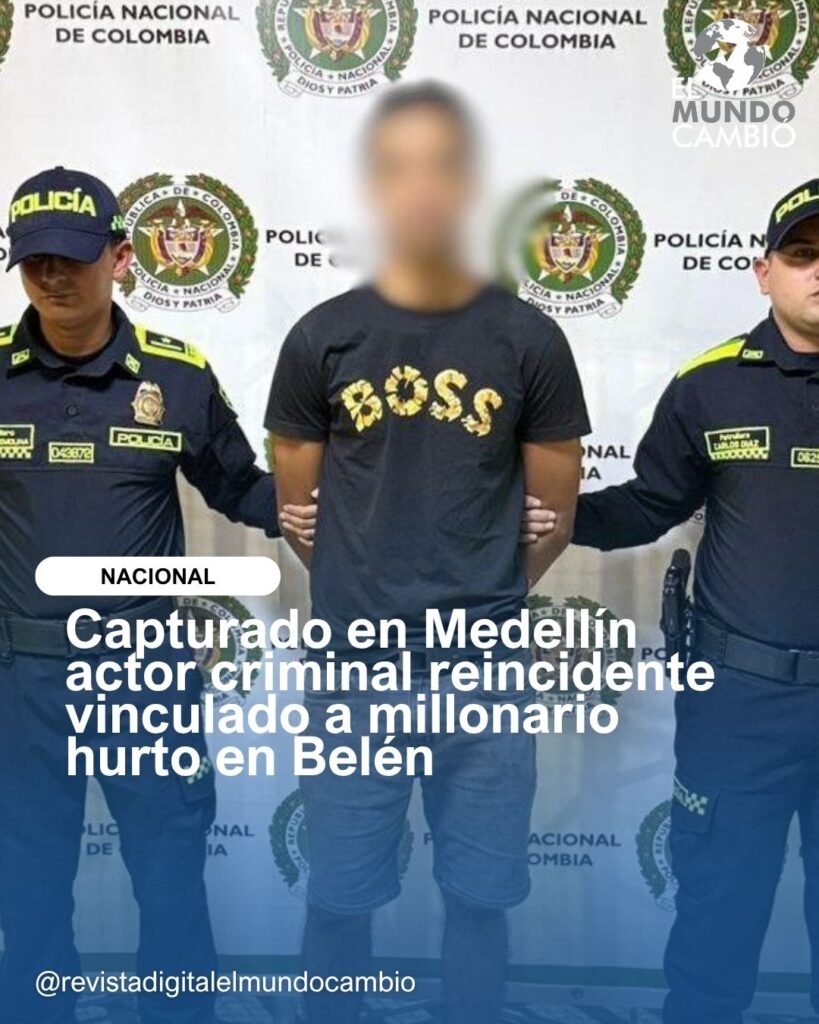 En el marco de la ofensiva nacional contra el multicrimen, la Policía Nacional de Colombia, en coordinación con la Fiscalía General de la Nación, logró la captura de un hombre de 27 años en el barrio Florencia, señalado de participar en un millonario hurto cometido en Belén y de ser un delincuente reincidente en la capital antioqueña.