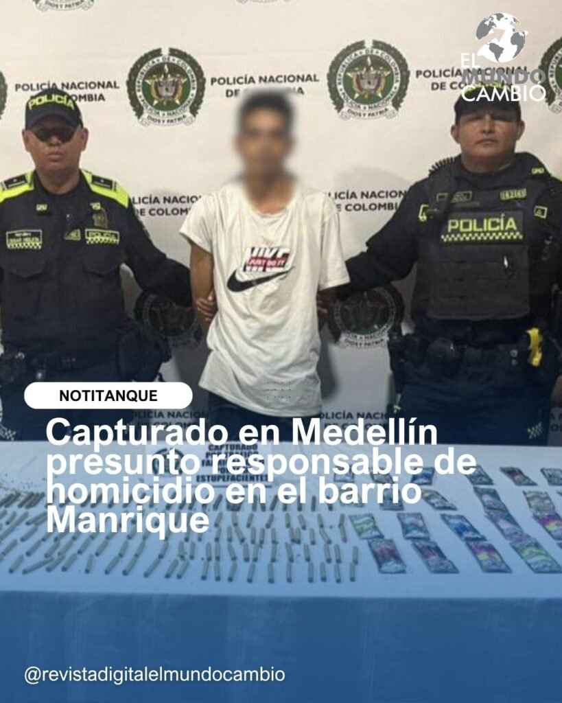 En una rápida acción investigativa y operativa, la Policía Nacional de los colombianos logró la captura de un hombre de 21 años, señalado de haber participado en un homicidio ocurrido en el barrio Manrique, al nororiente de Medellín. El hecho se habría presentado durante una riña que dejó como saldo la muerte de un hombre de 44 años.