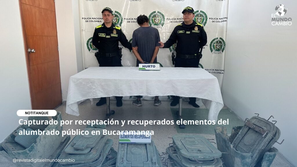 En el marco de la estrategia “Yo creo en una Metropolitana bonita y segura”, la Policía Metropolitana de Bucaramanga, adscrita a la Policía Nacional de Colombia, logró la captura de un hombre por el delito de receptación y la recuperación de varios elementos pertenecientes al sistema de alumbrado público en la ciudad de Bucaramanga.