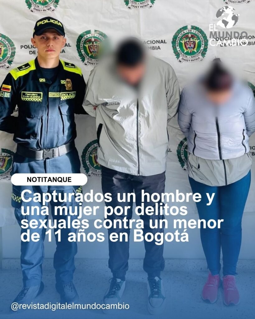 Bogotá D.C., octubre de 2025. En el marco de la estrategia “Seguros, cercanos y presentes”, la Policía Nacional de los colombianos, a través de la Seccional de Investigación Criminal (SIJIN), materializó la orden de captura contra un hombre de 40 años y una mujer de 35 años, señalados de cometer delitos sexuales contra un menor de 11 años.