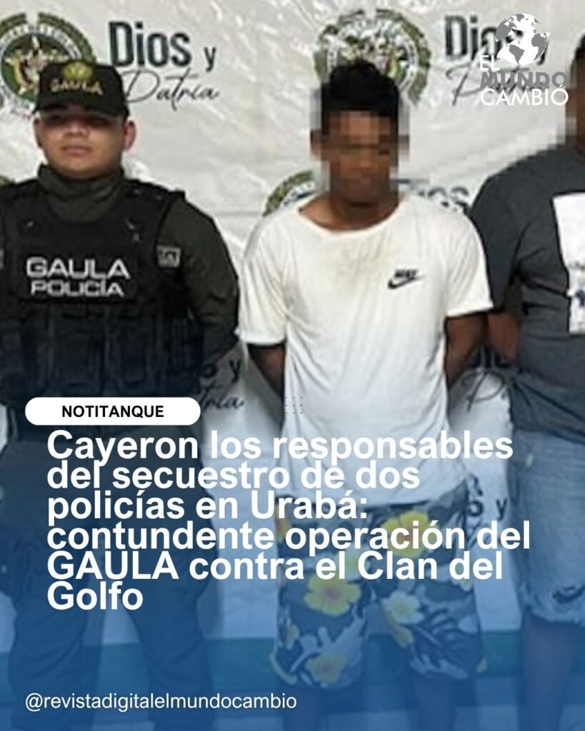 La Policía Nacional, en un trabajo conjunto con la Fiscalía General de la Nación, logró un importante avance en la lucha contra la criminalidad al capturar a tres presuntos miembros del Clan del Golfo, implicados en el secuestro de dos uniformados ocurrido en el corregimiento de Mulatos, Urabá, en octubre de 2024.