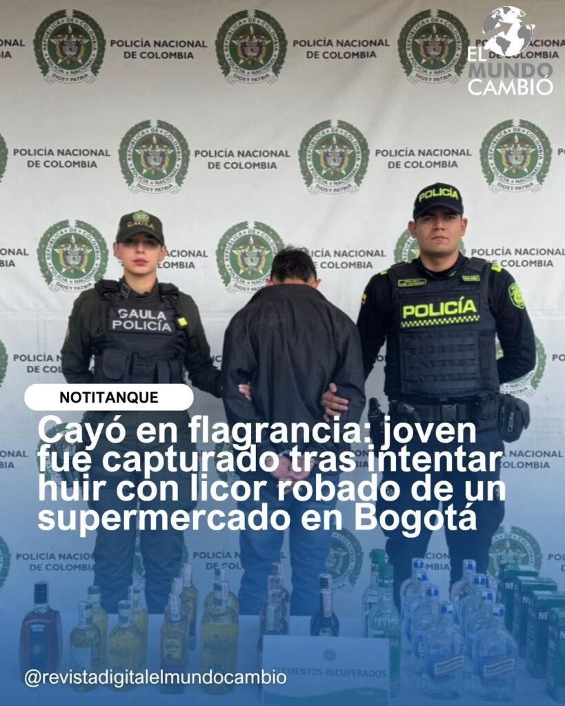 Cayó en flagrancia: joven fue capturado tras intentar huir con licor robado de un supermercado en Bogotá
