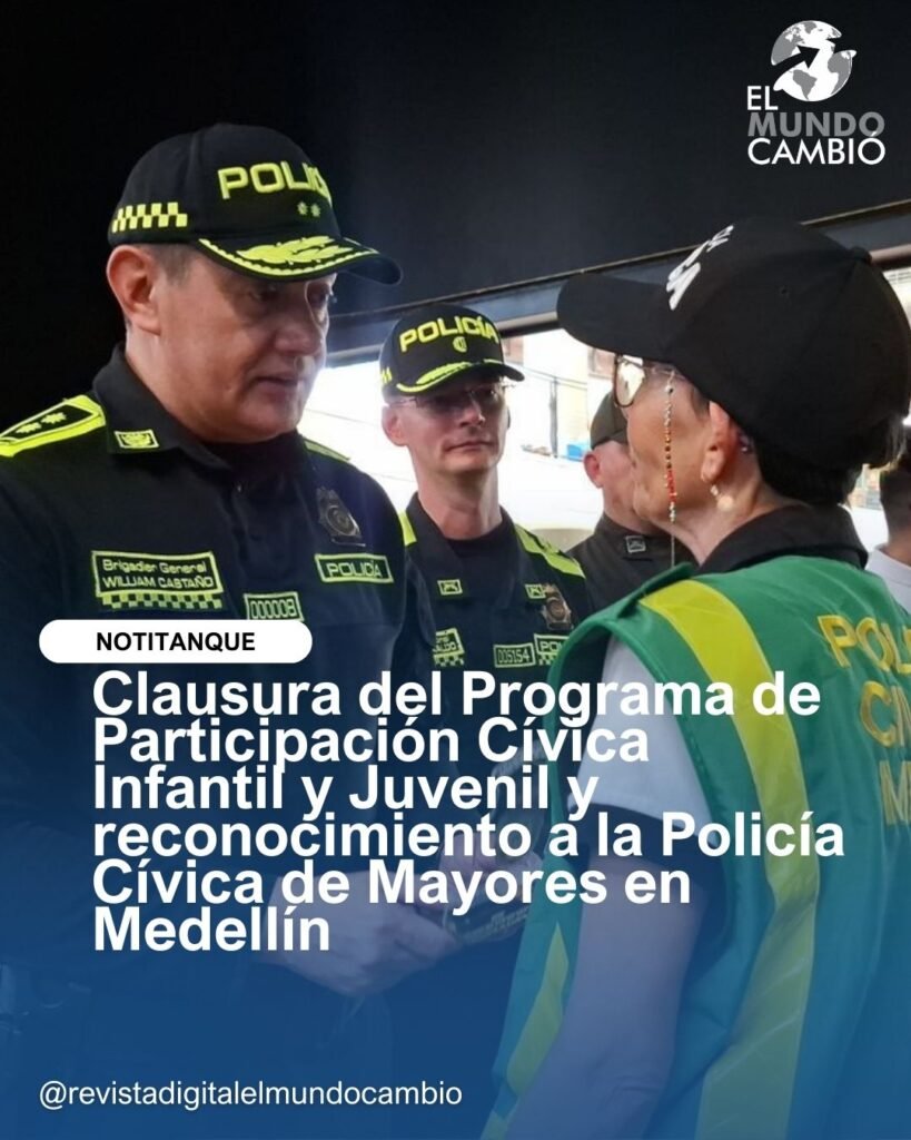 La Policía Nacional de Colombia clausuró de manera oficial el Programa de Participación Cívica Infantil y Juvenil, en un emotivo evento que también rindió homenaje a la Policía Cívica de Mayores del Área Metropolitana del Valle de Aburrá.