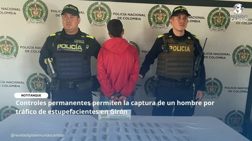 En el marco de la estrategia institucional “Yo creo en una Metropolitana Bonita y Segura”, la Policía Metropolitana de Bucaramanga, a través de unidades de las Zonas de Atención Policial (ZAP), logró la captura de un hombre de 23 años, conocido con el alias de “Alas”, por el delito de tráfico, fabricación o porte de estupefacientes, en hechos ocurridos en la calle 37 con carrera 29A, barrio Bellavista, municipio de Girón.