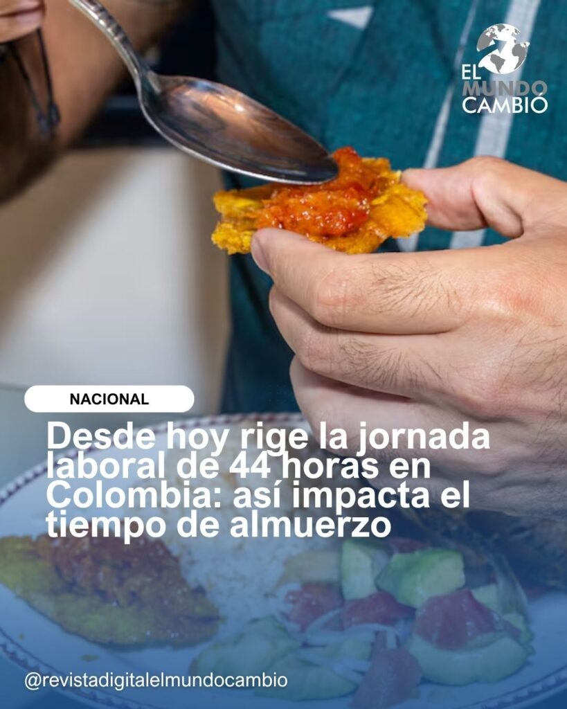 Bogotá, martes 15 de julio de 2025. En cumplimiento de la Ley 2101 de 2021, desde hoy la jornada máxima semanal pasa de 46 a 44 horas para trabajadores formales del sector privado. Paralelamente, el recargo dominical se ajusta al 80 %, mientras que el recargo nocturno inicia desde las 7 p.m., no desde las 9 p.m. Esto busca mejorar la calidad de vida sin afectar sueldos ni seguridad social .