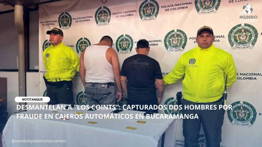 Bucaramanga – Colombia. En el marco de la estrategia “Yo creo en una Metropolitana bonita y segura”, la Policía Nacional, a través de la Seccional de Investigación Criminal (SIJIN), grupo contra atracos, logró la captura en flagrancia de dos hombres de 43 y 51 años, conocidos como “Los Coints”, por su presunta participación en delitos informáticos y financieros.