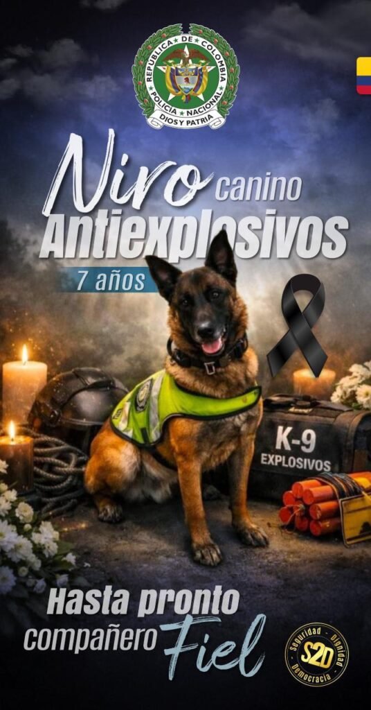 La Policía Nacional reiteró que el trabajo de la especialidad K-9 Antiexplosivos continúa fortaleciéndose, honrando la memoria de caninos como Niro y reafirmando el compromiso institucional con la seguridad, la prevención del riesgo y la protección de la vida.