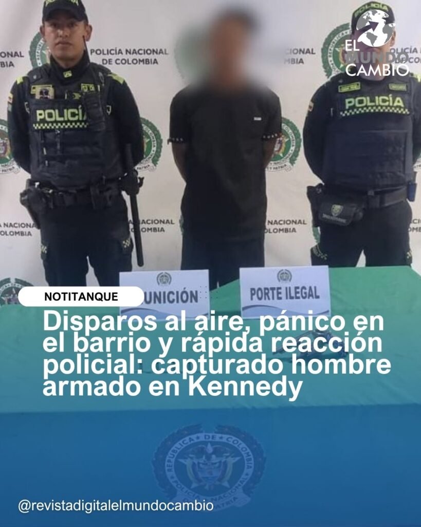 En un oportuno y contundente operativo, uniformados de la Estación de Policía Kennedy capturaron a un hombre que, en medio de la vía pública, realizaba disparos al aire e intimidaba a los ciudadanos del sector María Paz, poniendo en riesgo la vida de quienes se encontraban cerca.