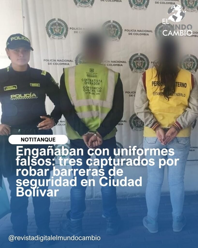 Un nuevo caso de modalidad de hurto fue frustrado en el sur de Bogotá gracias a la reacción inmediata de la Policía Nacional. Tres personas, que simulaban ser contratistas de obra para engañar a la comunidad, fueron capturadas en flagrancia mientras transportaban elementos de señalización vial robados en la localidad de Ciudad Bolívar.