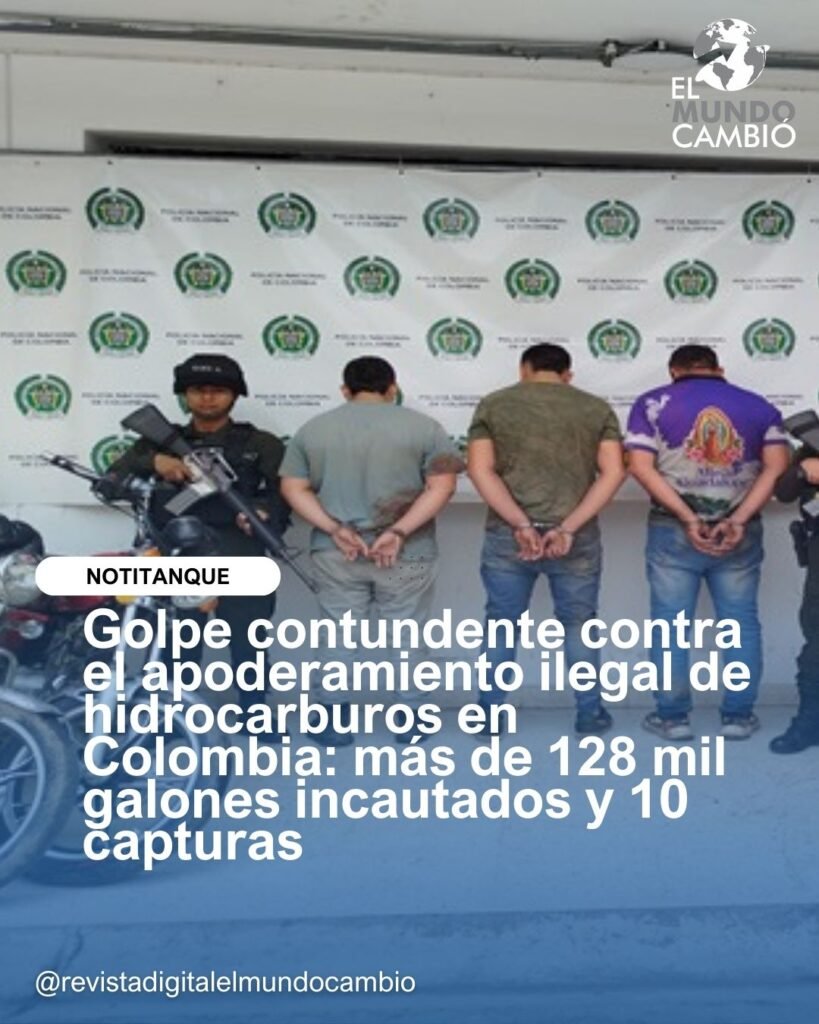 La Policía Nacional de Colombia, a través de la Dirección de Carabineros y Protección Ambiental, propinó uno de los golpes más significativos del año contra las economías ilegales dedicadas al apoderamiento ilícito de hidrocarburos. En una operación de gran alcance, desarrollada en varios departamentos del país, fueron incautados, recuperados e inhabilitados más de 128 mil galones de combustible, se desmantelaron sofisticadas estructuras clandestinas y se materializaron 10 capturas que afectan directamente a organizaciones criminales de alto impacto.
