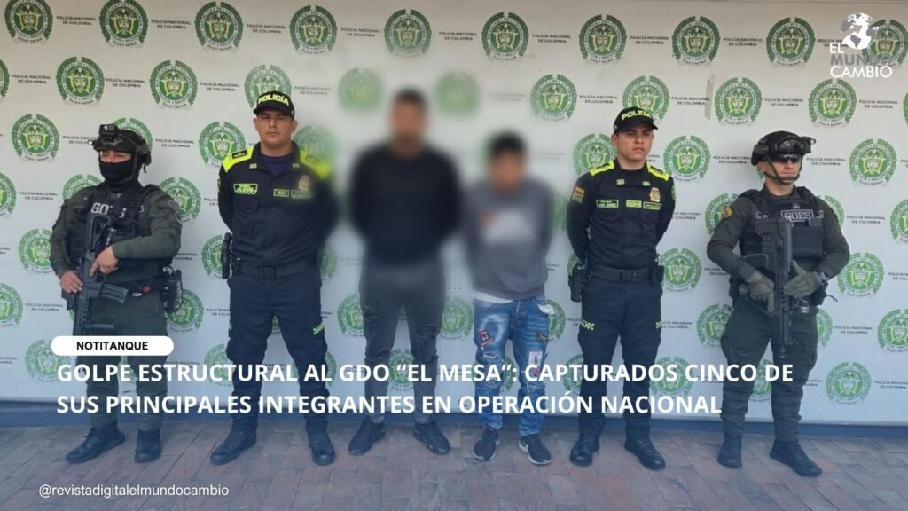 Colombia. En una acción articulada entre la Policía Nacional y la Fiscalía General de la Nación, se logró la captura de cinco presuntos integrantes del grupo delincuencial organizado “El Mesa”, mediante operativos simultáneos desarrollados en los departamentos de Quindío, Tolima, Cundinamarca y Bogotá D.C.