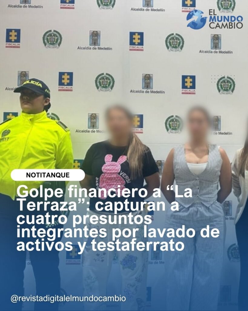 La ofensiva contra el crimen organizado dio un nuevo golpe. En una acción quirúrgica, la Policía Nacional de Colombia, en coordinación con la Fiscalía General de la Nación, logró la captura de cuatro presuntos miembros del grupo delictivo “La Terraza”, señalados de ser piezas clave en la estructura financiera y de lavado de activos de esta red criminal con fuerte presencia en el Valle de Aburrá y el Eje Cafetero.