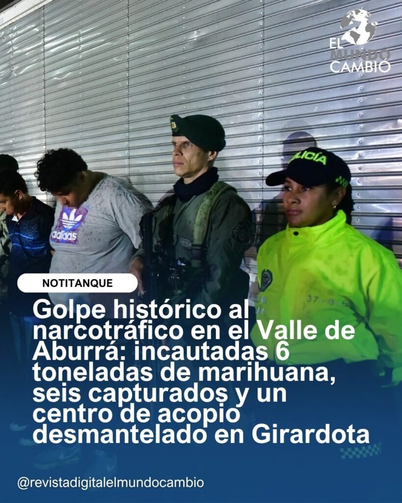 En una operación de alto impacto que demuestra la contundencia de las acciones contra las redes de narcotráfico, la Policía Nacional, en articulación con la Fiscalía General de la Nación, logró la incautación de 6 toneladas de marihuana tipo exótica, la captura de seis personas y el desmantelamiento de un centro de acopio utilizado para almacenar y distribuir cargamentos ilícitos hacia Medellín. El operativo se desarrolló en una finca ubicada en zona rural de Girardota, convertida en un enclave estratégico para las organizaciones criminales.