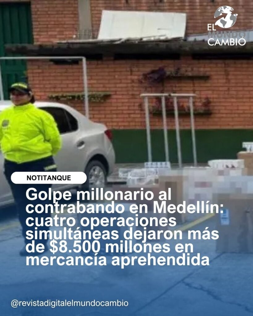 La Policía Nacional de Colombia, en coordinación con la Fiscalía General de la Nación y la Dirección de Impuestos y Aduanas Nacionales (DIAN), asestó un contundente golpe contra las economías ilegales en Medellín, logrando la aprehensión de mercancías de contrabando avaluadas en más de 8.500 millones de pesos, durante el desarrollo de cuatro operaciones simultáneas en distintos puntos de la capital antioqueña.