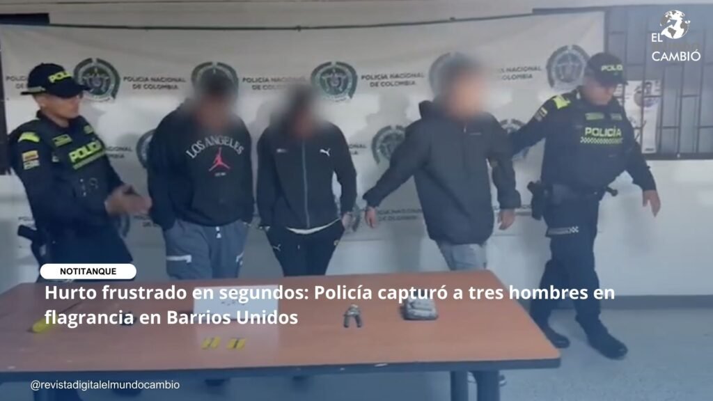 En una rápida y oportuna reacción, uniformados adscritos a la Policía Nacional de los colombianos, a través de la Estación de Policía Barrios Unidos, lograron la captura en flagrancia de tres hombres por el delito de hurto y la recuperación inmediata de un computador portátil que había sido sustraído de un vehículo en el barrio Polo Club, en la ciudad de Bogotá.