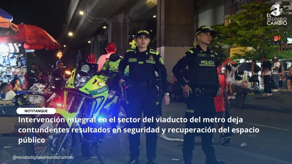En el marco de su compromiso permanente con la seguridad y la convivencia ciudadana, la Policía Nacional adelantó una intervención integral, planeada y ejecutada en el sector del viaducto del metro de Medellín, con el propósito de recuperar el espacio público, prevenir hechos delictivos y mejorar las condiciones de seguridad para la comunidad y los usuarios del sistema de transporte.