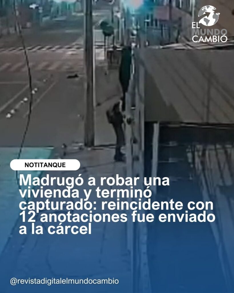 El hombre fue capturado en flagrancia por el delito de violación a domicilio y puesto a disposición de la autoridad competente. Tras las audiencias preliminares, un juez de la República le dictó medida de aseguramiento en centro carcelario, teniendo en cuenta que el capturado registra 12 anotaciones judiciales por diferentes hechos de hurto, lo que evidencia su reincidencia delictiva.