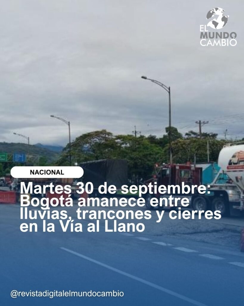 Martes 30 de septiembre: Bogotá amanece entre lluvias, trancones y cierres en la Vía al Llano