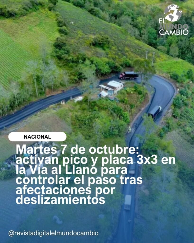 Martes 7 de octubre: activan pico y placa 3×3 en la Vía al Llano para controlar el paso tras afectaciones por deslizamientos