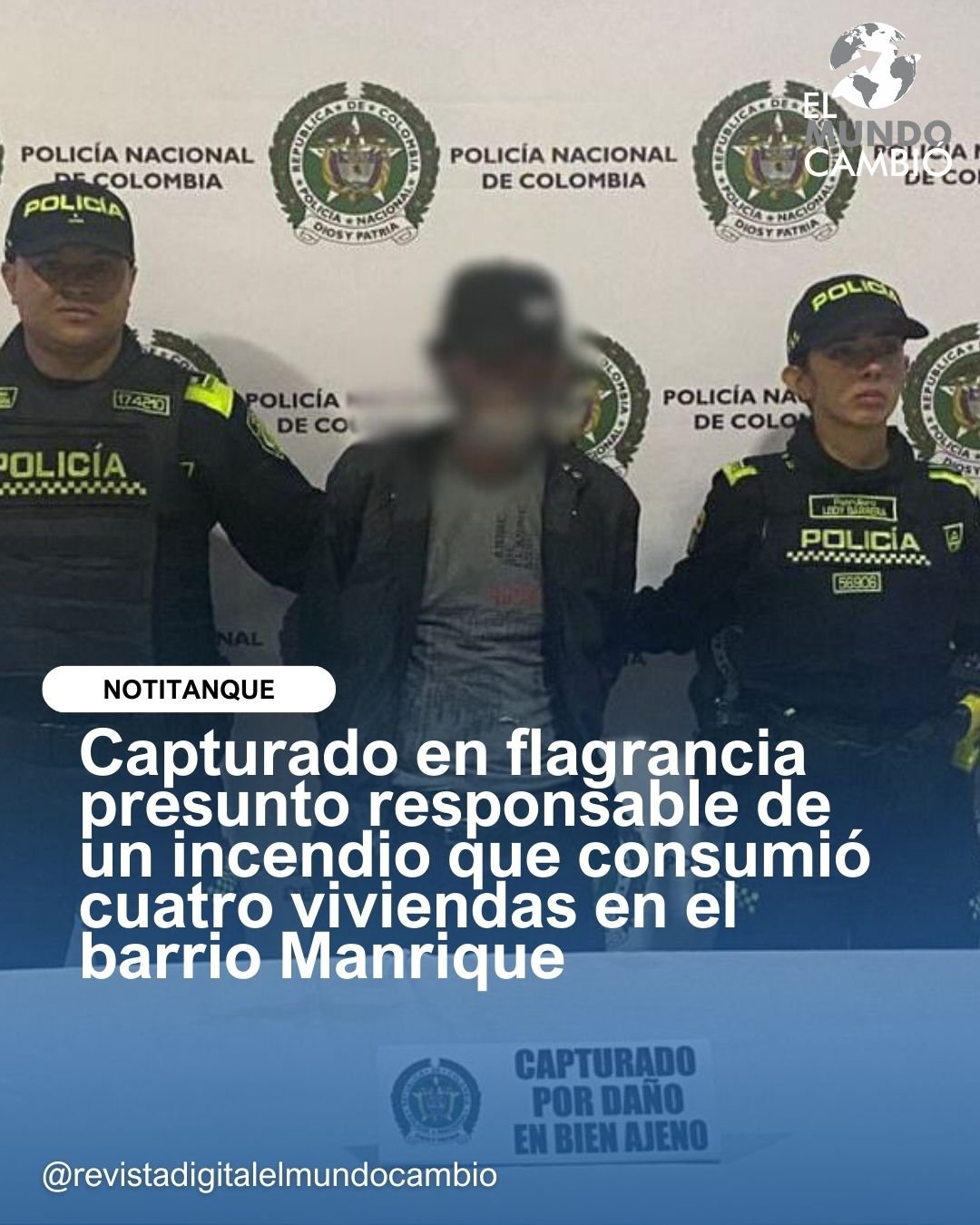Capturado en flagrancia presunto responsable de un incendio que consumió cuatro viviendas en el barrio Manrique