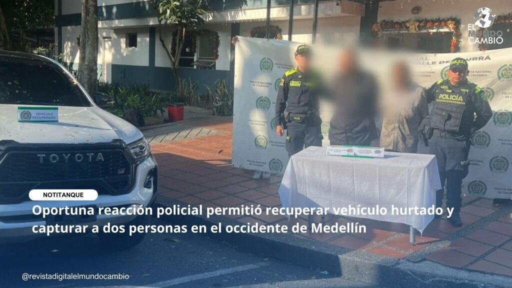 La Policía Nacional, a través de las unidades de vigilancia de la Policía Metropolitana del Valle de Aburrá, logró un importante resultado operativo en el centro occidente de Medellín, reafirmando su compromiso con la seguridad y la convivencia ciudadana.