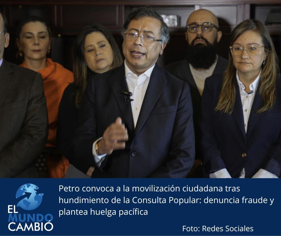 Bogotá, 16 de mayo de 2025 — Luego de que el Senado de la República hundiera la propuesta de Consulta Popular impulsada por el presidente Gustavo Petro, el mandatario reaccionó con dureza y anunció una estrategia de movilización ciudadana para responder a lo que considera un “fraude institucional” en contra de su gobierno y de las reformas sociales que busca implementar.