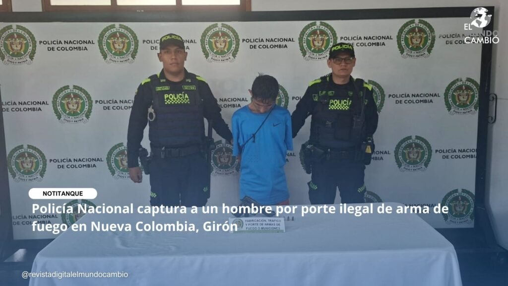 En el marco de la estrategia institucional “Yo creo en una Metropolitana Bonita y Segura”, la Policía Nacional, a través de unidades de las Zonas de Atención Policial de la Policía Metropolitana de Bucaramanga, logró la captura de un hombre de 40 años por el delito de fabricación, tráfico, porte o tenencia de armas de fuego, accesorios, partes o municiones, durante un procedimiento adelantado en el barrio Nueva Colombia, municipio de Girón.