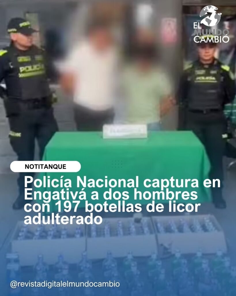 Bogotá D.C., octubre de 2025. En una acción contundente contra los delitos que ponen en riesgo la salud pública y la seguridad económica, la Policía Nacional de los colombianos, en el marco de la estrategia institucional “Seguros, Cercanos y Presentes”, logró la captura en flagrancia de dos hombres que transportaban 197 botellas de aguardiente adulterado en la localidad de Engativá.