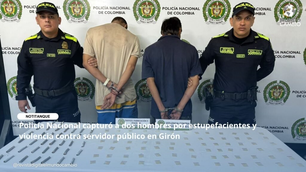 En el marco de la estrategia institucional “Yo creo en una Metropolitana Bonita y Segura”, la Policía Metropolitana de Bucaramanga, a través de unidades de las Zonas de Atención Policial, logró la captura de dos hombres de 31 y 29 años de edad por los delitos de tráfico, fabricación o porte de estupefacientes y violencia contra servidor público, en hechos registrados en el barrio La Meseta 2, municipio de Girón.