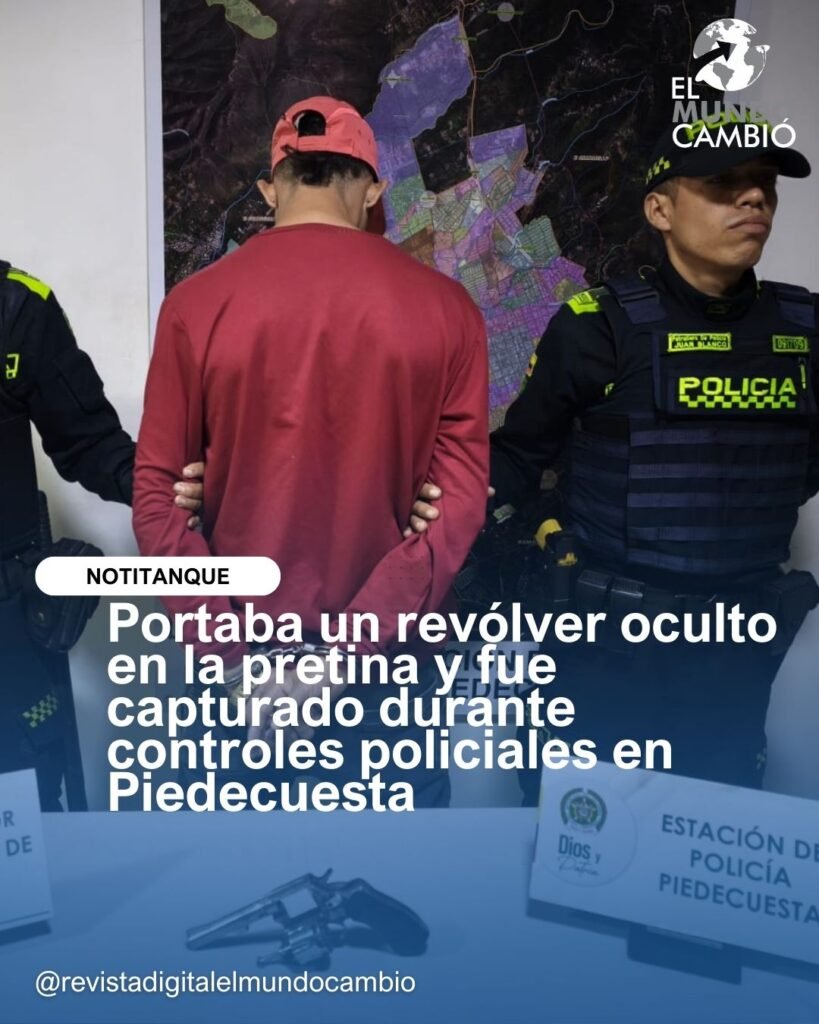 En el marco de los planes preventivos y operativos desplegados durante la temporada navideña, la Policía Metropolitana de Bucaramanga logró la captura en flagrancia de un hombre por el porte ilegal de un arma de fuego en el municipio de Piedecuesta, reafirmando su compromiso con la protección de la vida, la convivencia y la seguridad ciudadana.