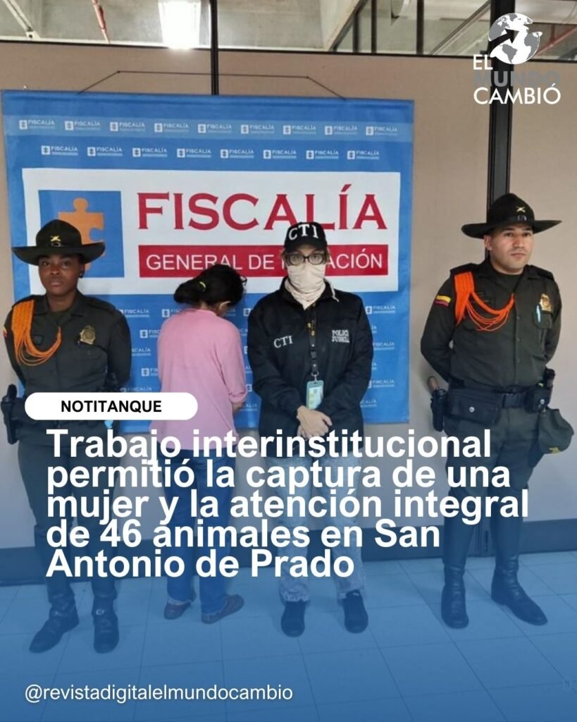 Durante el procedimiento fue capturada una mujer de 64 años, señalada como presunta responsable del delito de maltrato animal, contemplado en la Ley 1774 de 2016 y otros lineamientos jurídicos que protegen a los animales como seres sintientes. La mujer fue puesta a disposición de la Fiscalía para el avance del proceso judicial.