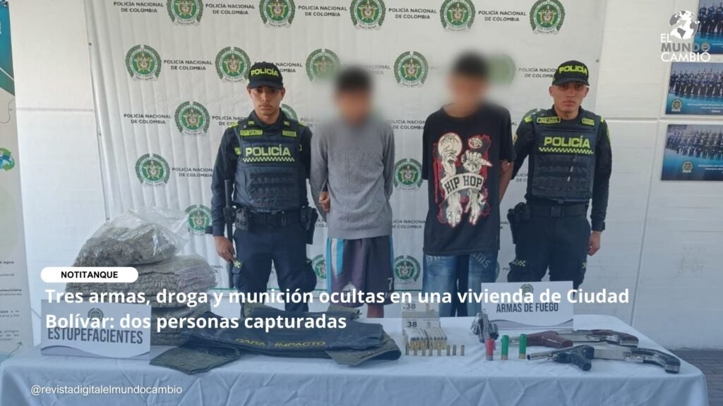 En desarrollo de las acciones permanentes de patrullaje, registro y control para fortalecer la seguridad y la convivencia ciudadana, la Policía Nacional de Colombia logró la captura de dos personas por varios delitos relacionados con armas de fuego y estupefacientes, en hechos registrados en la localidad de Ciudad Bolívar, al sur de Bogotá.