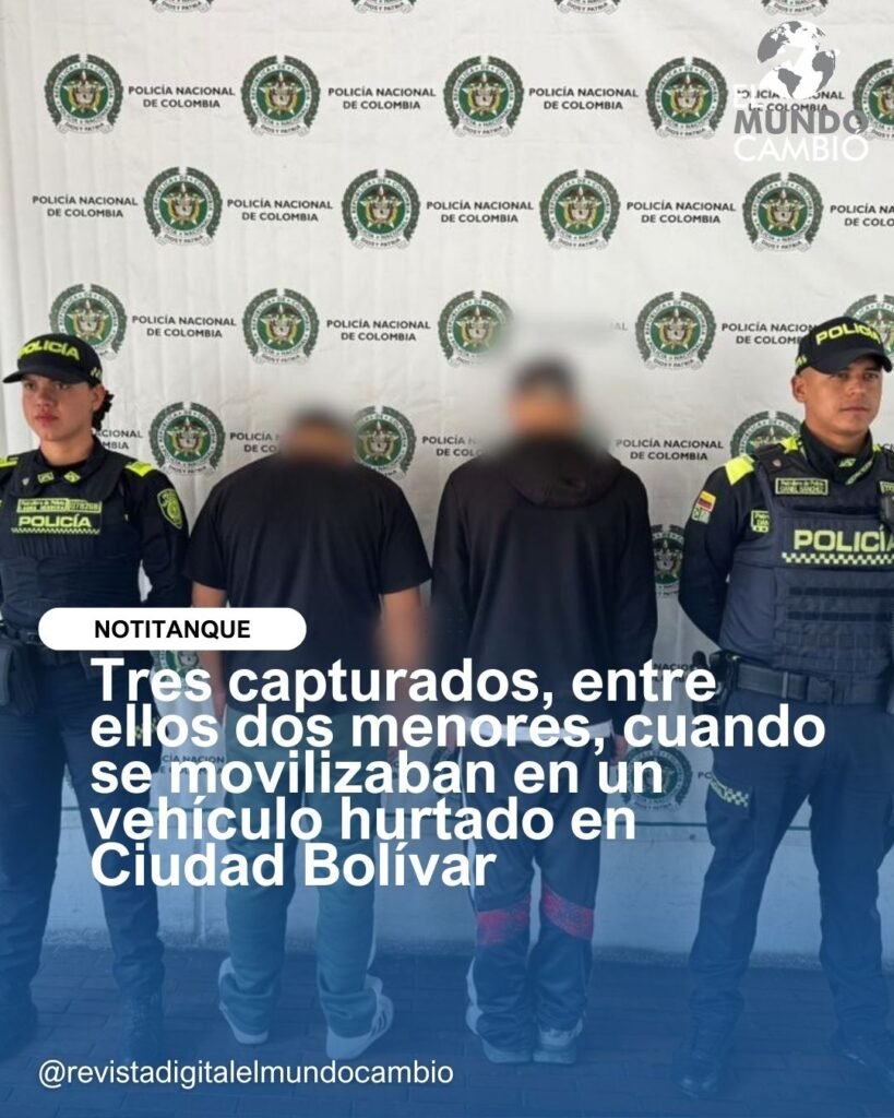 Un nuevo resultado operativo contra el hurto de automotores se registró en la localidad de Ciudad Bolívar, donde uniformados de la estación de Policía lograron la captura de un adulto y la aprehensión de dos menores de edad que se movilizaban en un vehículo que presentaba reporte de hurto.